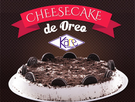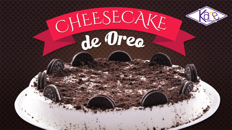 • Cheesecake de Oreo Dulce costra de galleta oreo, relleno con una mezcla de quesos y galleta oreo, decorado con betún de crema, galleta molida y en mitades.