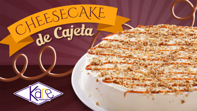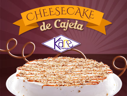 • Cheesecake de Cajeta Una base de galleta de vainilla, rellena de una deliciosa combinación de queso y cajeta, decorado con betún de crema, chorreado de dulce de leche y nuez molida.