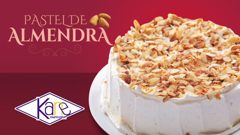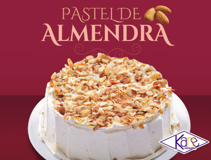 • Pastel de Almendra Riquísimo pastel sabor almendra, con almendra molida en la masa, cubierto con betún de crema y almendras molidas, decorado con almendra tostada