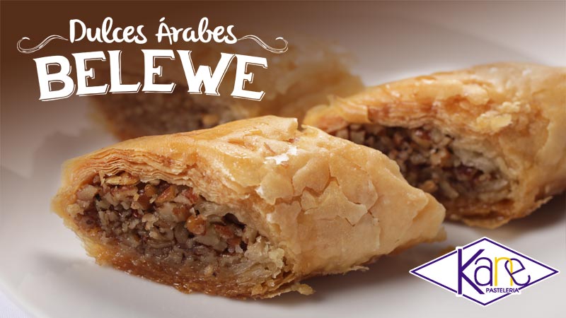 • Belewe Dulce árabe relleno de nuez molida envuelto con una pasta hojaldrada, bañado con miel.