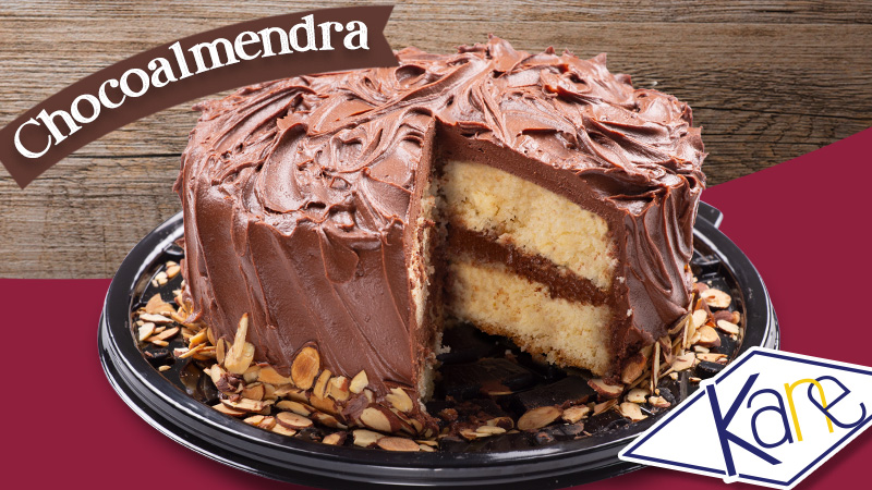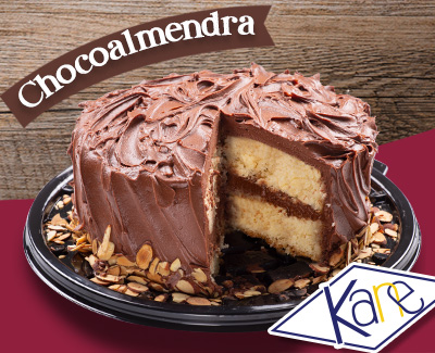 • Pastel de Chocoalmendra Pastel de chocolate y almendra, cubierto por un delicioso betún de chocolate y decorado con almendras fileteadas.