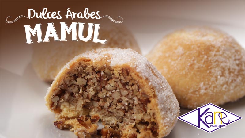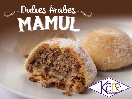• Mamul Dulce árabe de costra de galleta rellena de nuez molida, espolvoreado con azúcar.