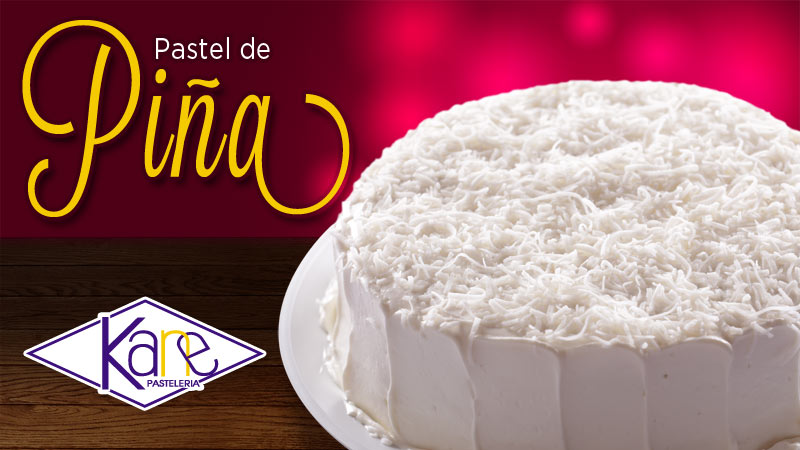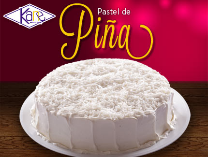 • Pastel de Piña Pastel sabor piña, cubierto con betún elaborado a base de crema, con un toque de vainilla y decorado con coco rallado.