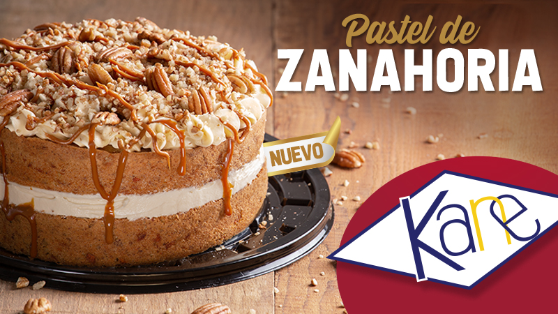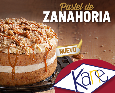 • Pastel de Zanahoria El tradicional pastel de zanahoria con trozos de nuez al estilo Kane, cubierto con delicioso betún de queso crema y decorado con nuez molida y cajeta.