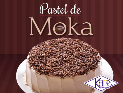 • Pastel de Moka Sabor chocolate con café, cubierto con betún de crema sabor café con chocolate y decorado con una mezcla de granillo de chocolate oscuro y claro.