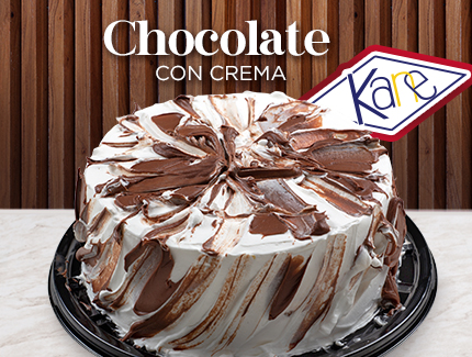 • Chocolate con Crema Sabor chocolate, cubierto con betún de crema con un toque de vainilla, decorado con chorreado y granillo de chocolate oscuro y una cereza al centro.
