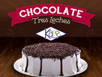 • Tres Leches de Chocolate Pastel sabor chocolate, cubierto con betún elaborado a base de crema con un toque de vainilla, decorado con granillo de chocolate oscuro. ¡Una delicia!