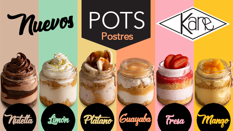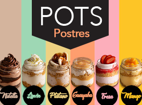 • Pots Deliciosos postres individuales de sabores: Nutella, Mango, Guayaba, Limón, Fresa y Plátano. ¡Pruébalas!